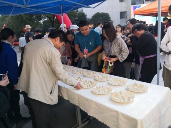 师生包饺子比赛、教师刀工比赛和学生水果秀“创意拼盘”比赛现场,人头攒动。包饺子比赛是历届美食节传统节目,大家热情在线,手上功夫不断进步,互相切磋技艺,其乐融融。水果拼盘比赛现场,同学们卯足了劲,把简简单单的水果以创新鲜活的形式展示在大家面前。教师刀工比赛,萝卜和土豆瞬间变成整齐的丝或条,刀工达人一较高下。最后由教师代表和学生代表组成的评审组,经过认真投票,评出优秀奖和参与奖等不同奖项。大家体验了自己动手的快乐,收获了团队合作的成果。