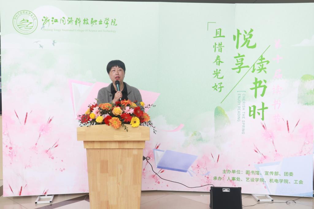 开幕式上,教师代表建筑工程学院郭慧芳老师结合自身爱读书、好读书的经验,号召大家终身学习,与书相伴。“做一辈子教师”,就必须“一辈子学做教师”,不断读书。学生代表艺术与设计学院杜楠楠同学号召大家与好书同行,让读书成为一种时尚,一种习惯。