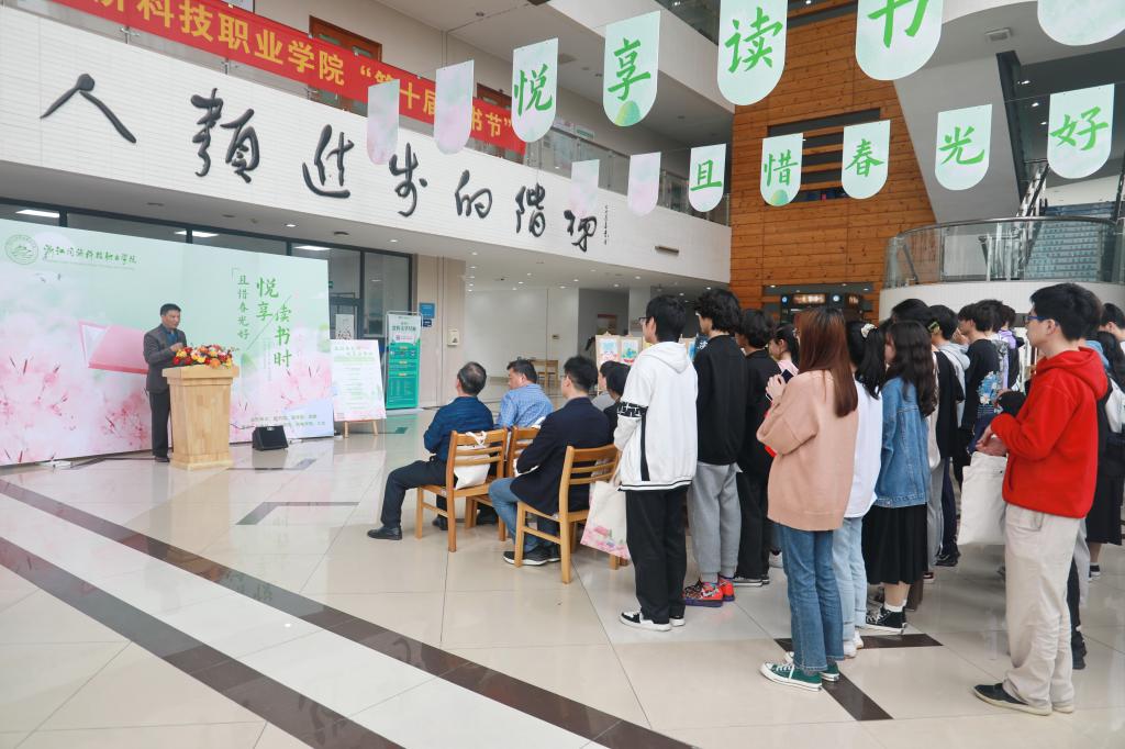4月23日,在“世界读书日”当天,校第十届读书节在图书馆大厅开幕。学校党委书记江影、副校长朱兆平、党委委员宣传部部长吴敏启出席活动,各二级学院党总支书记、部分师生代表、读书节承办方负责人及图书馆全体人员参加了开幕式。开幕式由朱兆平副校长主持。