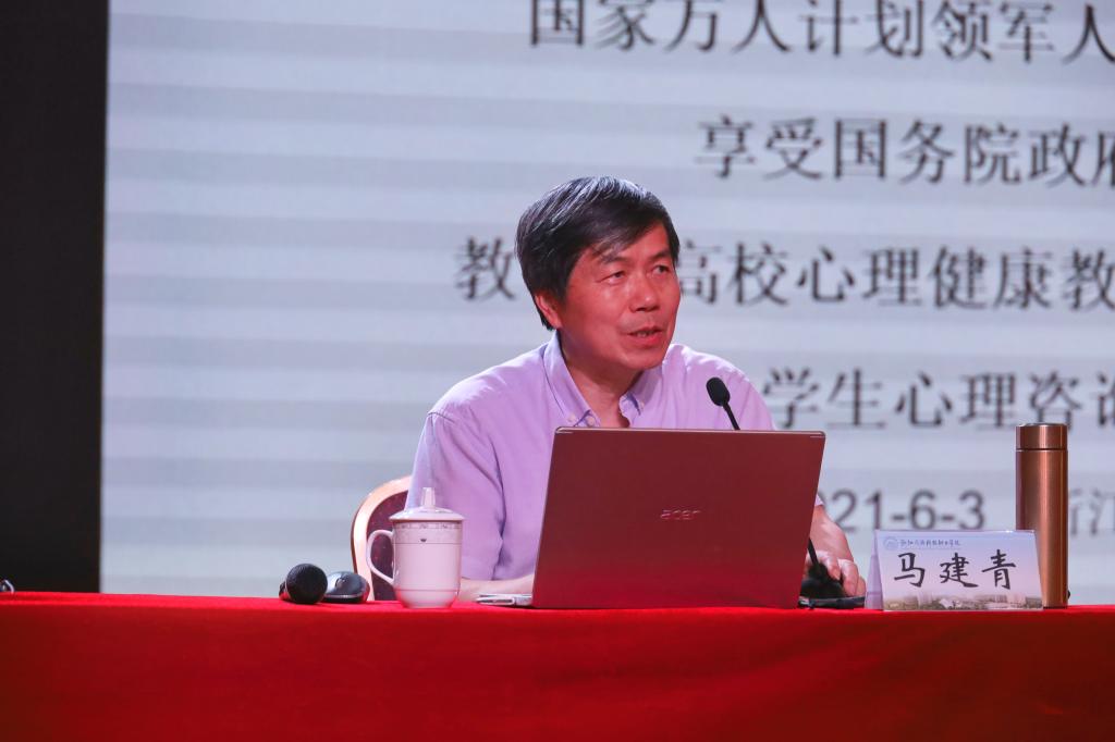马建青教授是国家教育部高校心理健康教育专家指导委员会委员、国家万人计划领军人才(国家教学名师),全国大学生心理咨询专业委员会副主任,有丰富的心理咨询和心理危机干预经验。他回顾了习近平总书记在十九大及全国高校思想政治工作会议上关于加强人文关怀和心理疏导的讲话精神,强调高校思想政治工作要做到全员全过程全方位育人格局,切实提高工作亲和力和针对性,强调了“心理育人”的重要性。马教授重点深入分析了发生在高校校园中的典型案例,提出注意的问题及启示。