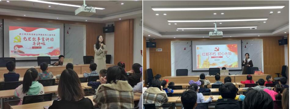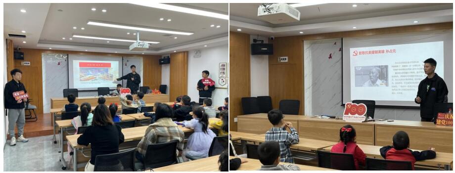 活动一开始,机电一体化技术党支部书记蒋帆老师为小朋友们讲述了《红井》的故事。红都不朽,初心永恒,革命老区人民吃水不忘挖井人的故事引人入胜,蒋帆老师的讲述让“小工匠”们了解过往的红色记忆,在小朋友们的心中埋下一颗红色种子。从渡江战役中的少年英雄马毛姐,到抗美援朝战争中双腿断裂仍旧顽强杀敌的“一级英雄”孙占元,再到生命最后一刻仍旧心系科学事业的林俊德院士,机电学院党史故事宣讲团成员通过动情讲述,为“小工匠”们展现了共产党人敢拼敢闯、不畏牺牲的壮志豪情,展现了矢志报国、忘我工作的高尚情怀。小朋友们沉浸到党史故事中,听得津津有味。听完党史故事后,小朋友们表示要好好学习科学文化知识,做伟大事业的接班人。