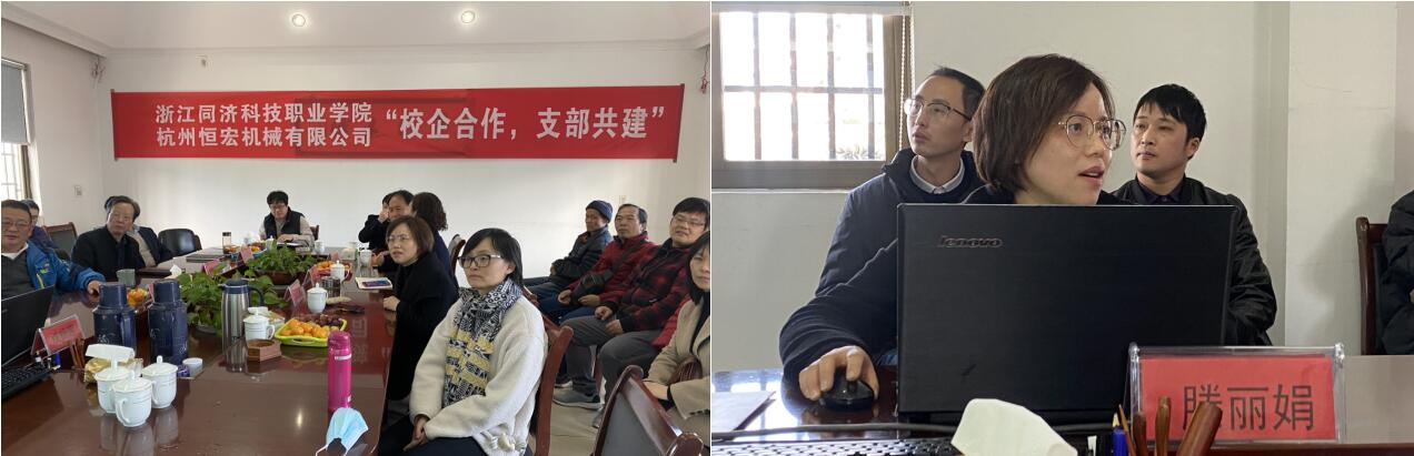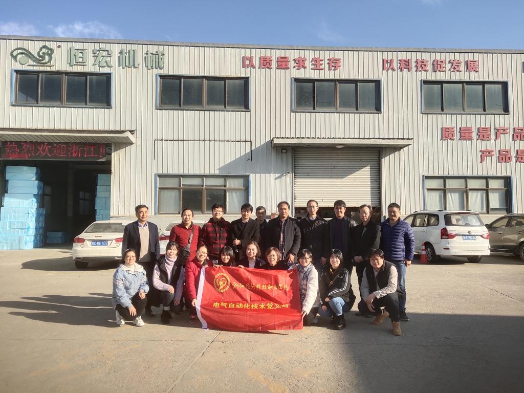 为将党史学习教育成果转化成为民办实事的实际行动,探索在新时代高校基层党建工作新思路、新模式,进一步推进“校企合作”的深度融合,2021年11月24日下午,机电学院党总支副书记章卉与电气自动化技术党支部教师党员等一行11人赴杭州恒宏机械有限公司开展校企支部共建活动。