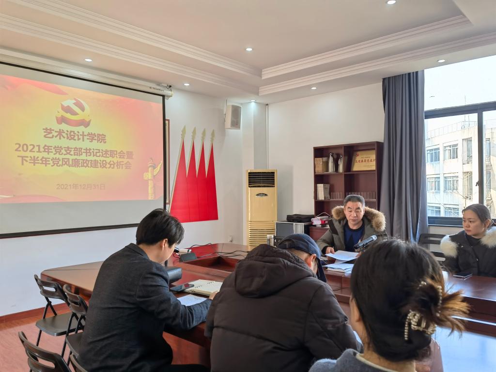 为深入推进党史学习教育,进一步落实全面从严治党,加强党风廉政建设工作,12月31日艺术设计学院党总支在B506会议室召开党支部书记述职大会暨学院下半年党风廉政建设分析会。党总支书记张文炜、全体党总支委员、支部书记、专业部主任及党员代表参加了本次会议。