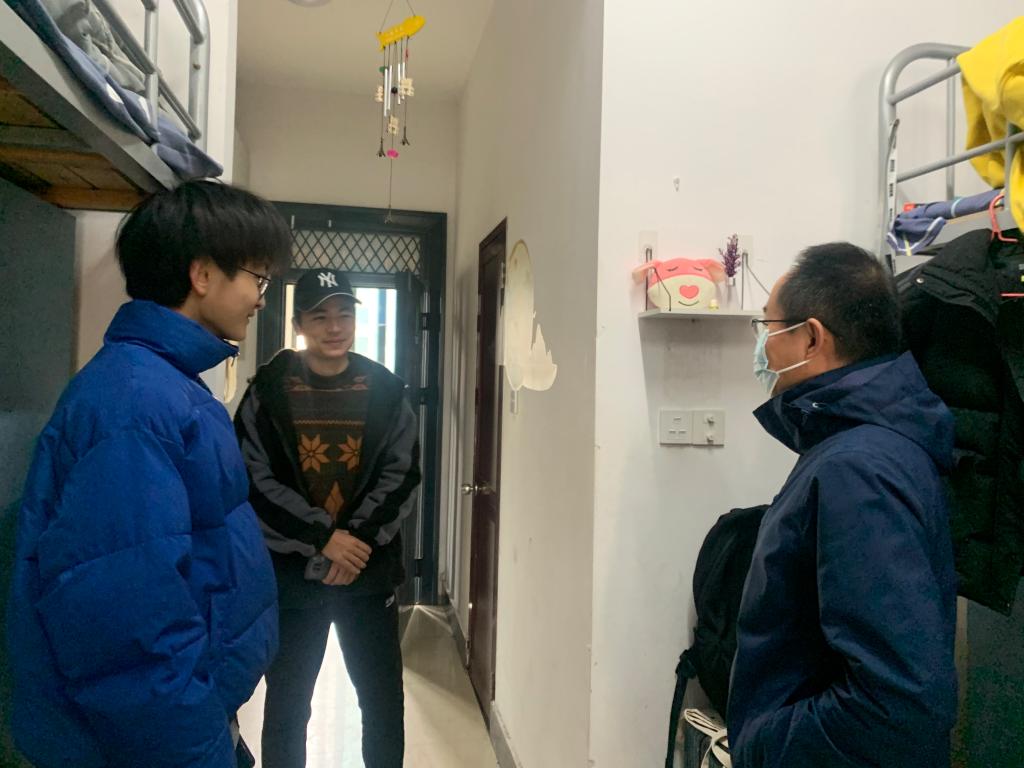 走访老师预祝同学们顺利完成期末考试,度过一个愉快的假期。走访过程气氛轻松融洽,同学们对老师的关心和指导表达感谢,同时也表示会配合学校假期安排和疫情防控工作。