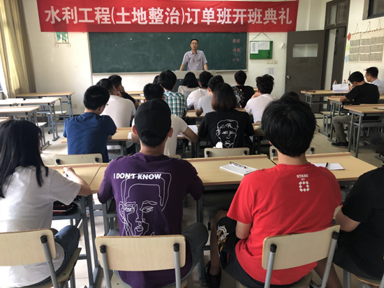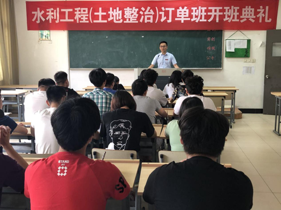 据悉,自土地整治订单班开设以来,共有来自2016级水利工程、水利水电建筑工程专业设计方向的50余名学生踊跃报名,经选拔确定22名学生进入土地整治订单班,通过学生与企业双向选择,分别与8家从事土地整治规划设计的企业达成订单培养意向。同时,水利系在土地整治专业调研的基础上,根据企业对土地整治规划设计岗位人才的需求,个性化制定了包含土地资源管理、土地整治规划设计、土地经济与法规等10个专题的土地整治专业订单培养计划,学员在完成相关专题课程任务后,进入企业开展跟岗实习任务。
