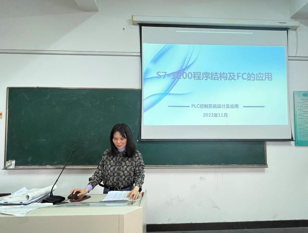 卢蔚瑶老师教授了《PLC控制系统设计与应用》中S7-1200程序结构及FC应用的内容。卢蔚瑶老师兼顾了PPT上的理论知识与软件的实际应用操作,将知识点拆解后细致讲给学生听,过程清楚,条理清晰,教学内容把控得十分到位。