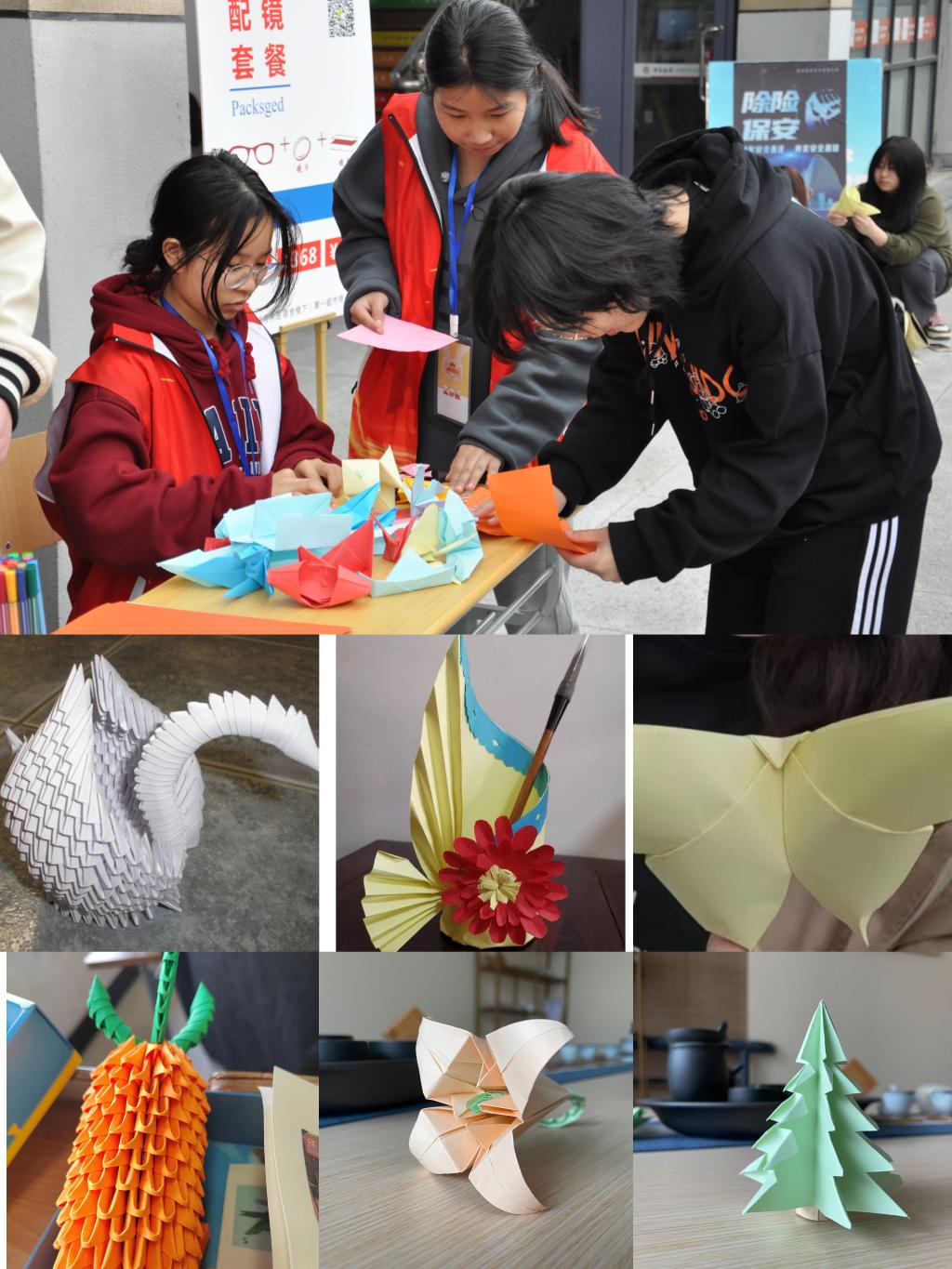 活动现场,同学们积极踊跃,志愿者们热情细心,气氛融洽。在志愿者的指导下,一张张彩纸在心灵手巧的学生们手中幻化成充满创意的作品。大家不仅学习到了基础的折纸技巧,更是通过这样的减压方式化解了内心的焦虑和不安。