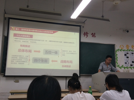 为进一步提高学生党员以及发展对象的思想觉悟,深入学习习近平新时代中国特色社会主义思想的理论,强化共产主义理想信念,夯实学生党员理论基础,提升将党的政策理论应用到实际工作中去的能力,水利系于2018年5月30日18时,在A404教室对全体学生党员及发展对象进行了学习习近平新时代中国特色社会主义思想的专题培训。参加本次培训的有水利系全体学生党员、预备党员及发展对象,此次培训由水利系思政辅导员张峰老师为大家授课。