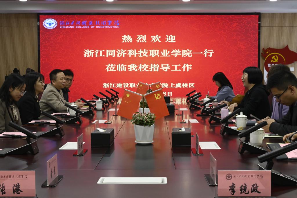 会上,浙江建设职业技术学院上虞校区管委会常务副主任黄暖介绍了学院的发展历史、办学特色等内容。随后双方就党建业务融合、校园文化建设、学生日常管理、心理健康教育、就业创业指导等方面进行深入交流。会后,叶书记一行实地参观了图书馆、党群服务中心、心理健康中心、学生社区、医务所等场馆。