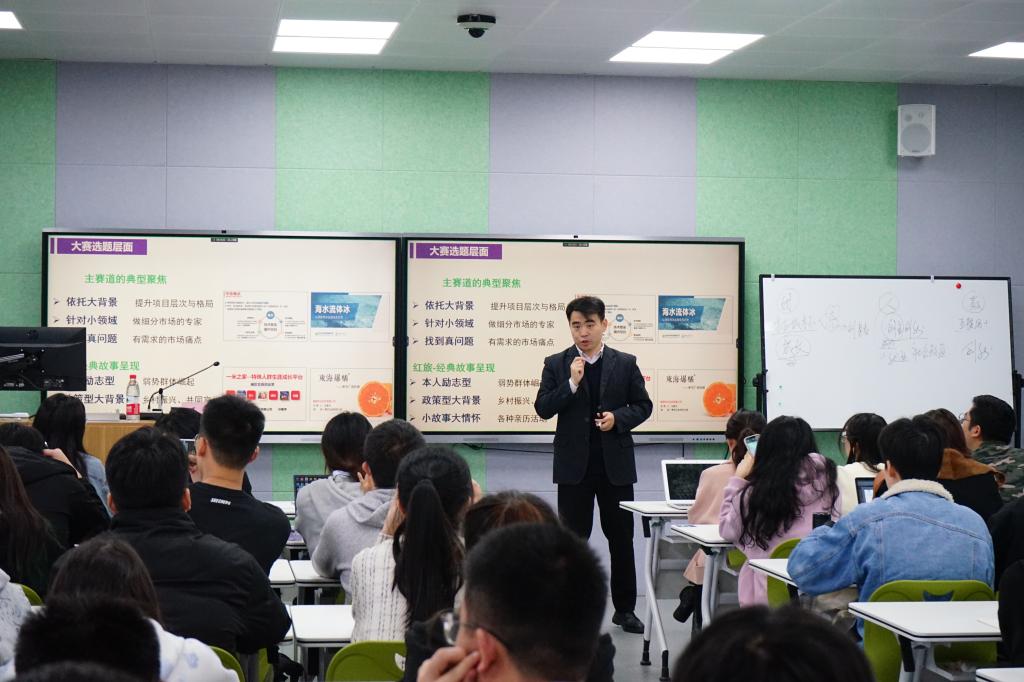 从大赛背景到具体赛制,从项目规划到落地措施,从理论研究到实际案例,聂兵一一为大家分享精彩内容。现场气氛热烈,讨论不断。相关团队负责人及指导老师纷纷发言,就项目落地中存在的问题进行交流。聂兵指出,“互联网+”项目的选择应结合学校资源和专业特色。如科创类项目可适当增添“科技元素”,文创类项目则应注重规模及先发优势,而公益类项目更应该把握项目的可持续性等。