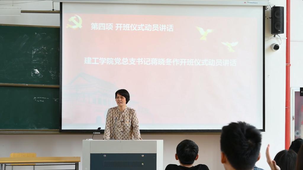 4月19日,建筑工程学院在C208教室举行了第十期业余党校开班典礼。学院党总支书记蒋晓冬参加。