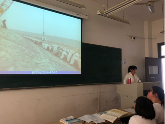 讲座上,杨高工以殴飞工程的工程项目为实例,围绕“海涂围垦”主题核心,从该项目的围垦施工过程中施工特点、施工重难点 和施工方法、施工特点三个方面深入浅出的铺开讲解,使同学们更加清晰地了解水利工程围垦工程在实施过程中遇到的问题和困难以及解决问题的办法,让同学们更加深入了解施工过程是如何运用围垦技术应用到工程项目中去解决问题的,如何将理论知识与实际工程项目联系起来在工程项目得到应用,从而进一步的引导学生要注重理论联系实践,深刻理解技术在工程上的应用。