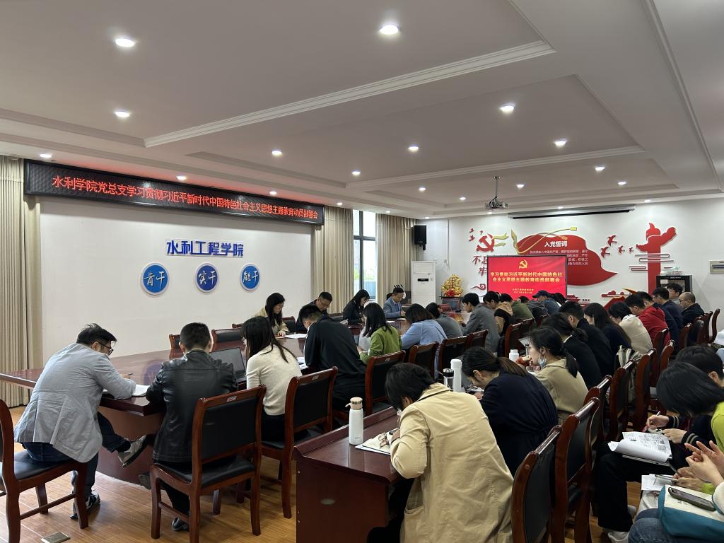 水利工程学院院长刘进宝强调,要在学校和学院党委的统一部署下,深入学习主题教育相关精神要求,切实增强开展主题教育的自觉性和坚定性,把理论学习、调查研究、推动发展、检视整改贯通起来,推动学院党建工作高质量发展。在开展专题学习和调查研究的同时,一体跟进检视问题和整改落实,高标准高质量落实主题教育中的各项重点工作。