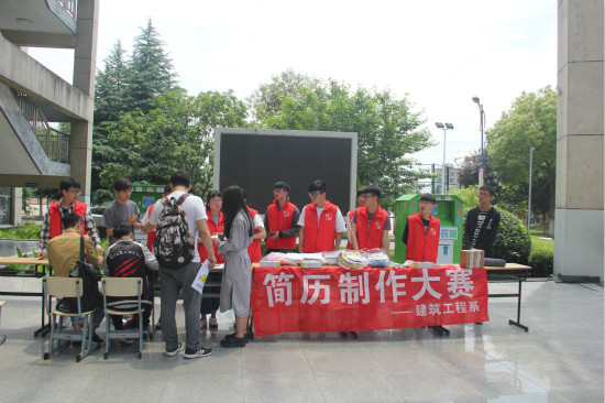 执笔书写人生精彩篇章,优秀简历架起通往就业的桥梁。为引领学生做好职业规划,帮助学生增强就业意识,掌握制作简历的技能,提高就业竞争力,5月10日中午,建筑工程系于食堂门口举办了以“服务学生,促进就业”为主题的简历制作大赛。
