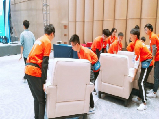 此次志愿服务活动在志愿汇中签到服务总时数达965.57小时,35名志愿者在两天的时间内志愿者们前期协助选手们登记酒店的入住、配合主办方场地的布置、向选手们介绍比赛的信息、对管外及车库刚来的选手引导咨询和与会人员签到;在比赛过程中负责设备调控和搬运、分发比赛资料、比赛计时和现场引导等志愿服务活动;在午餐时间也是没有休息时间,指引着参赛选手和工作人员在就餐区有序就餐;比赛结束后的颁奖舞台上,我院6名礼仪志愿者们引导领导上台和颁奖,其他部分志愿者则又忙碌于准备中国青年动漫创新创业论坛的领导座位。
