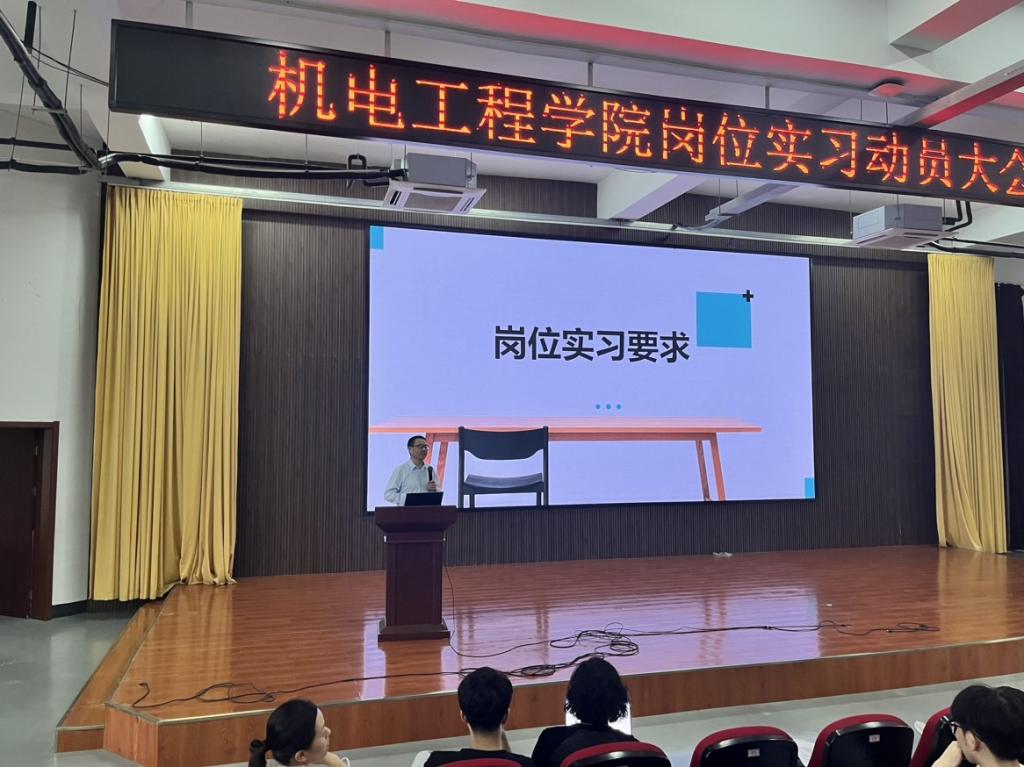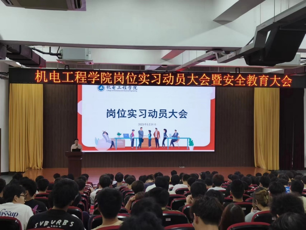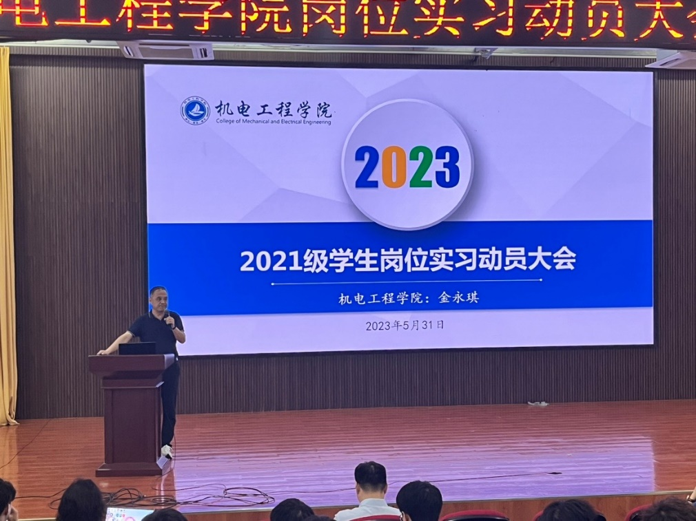 为进一步规范和加强岗位实习管理,保障学生岗位实习有序开展,5月31日下午,机电工程学院召开2021级学生岗位实习动员大会。学院党总支书记、院长金永琪,党总支副书记章卉,副院长孙连栋出席,各专业部主任、2021级各班级班主任、辅导员和2021级全体学生参加会议,会议由学院综合主管徐菁晶主持。