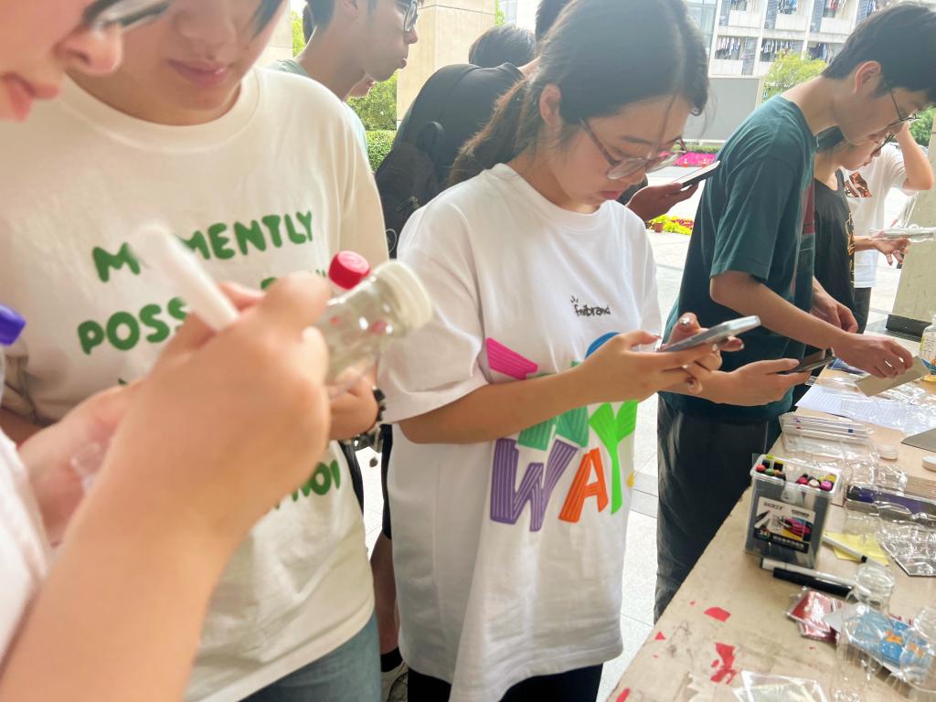 该活动面向2022级学生,志愿者分发漂流瓶和卡片,参加者写好寄语后,与其他同学进行交换。活动现场热闹非凡,同学们都很认真地书写自己心中的话语,有期待、有焦虑、有担忧……在一句句寄语中,同学们表达了自己的心声,也感受到其他同学的美好祝愿。