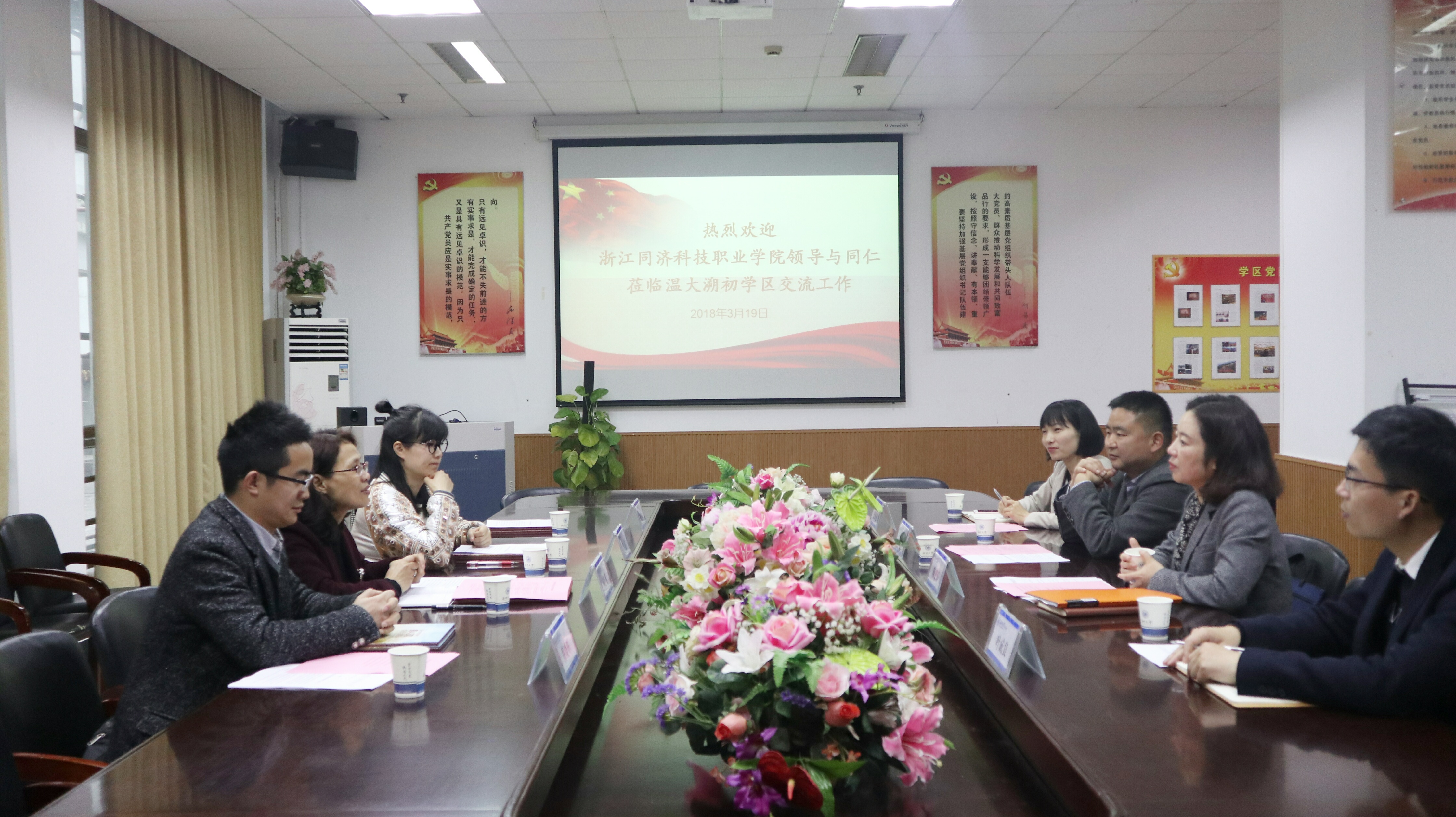 2018年3月19日,学院建工系党总支书记方志英、学工部傅鑫杰、辅导员傅晓艳赴温州大学溯初学区交流党建工作,受到溯初学区党委书记陈宏毅、党委副书记章志图热情接待。