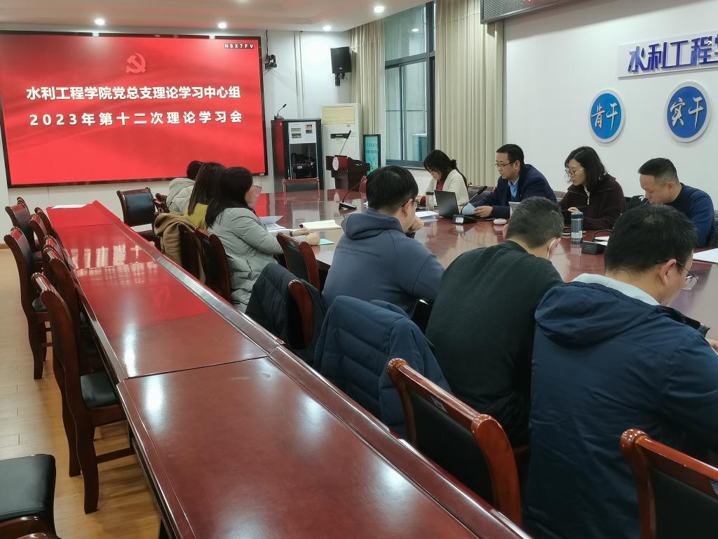 近日,水利工程学院理论学习中心组举行2023年第十二次理论中心组学习会,传达学习了习近平总书记在上海考察时的重要讲话精神、习近平总书记在广西考察时的重要讲话精神。会议由党总支书记叶乐主持。学院领导班子、党总支委员、各支部书记参加学习。