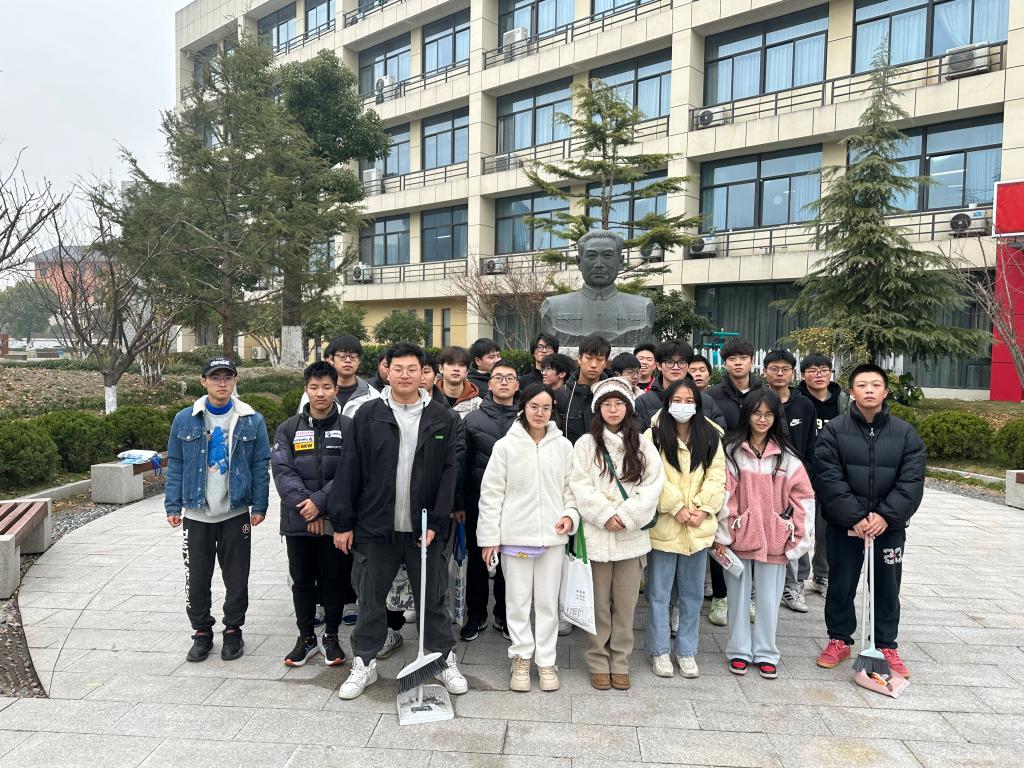到达周恩来广场后,大禹2023班的每位同学分工合作,细心清扫广场的每个角落。清理结束,班长陈秉义带领同学们一同学习了周总理“一条枕巾、两次‘发问’、三付餐费、四个昼夜、过好‘五关’、六个铜币、七条修养要则、八项工作安排”等著名的生平故事。周总理为人民服务的思想深深烙印在每一位同学的心中,“为中华之崛起而读书”的雄心壮志也时刻提醒大家要勤奋学习。最后,大禹2023班的全体同学在雕像前肃立,随着30秒的默哀结束后,大家整齐地向雕像鞠躬,表达了青年一代对这位伟人的敬仰和怀念。在这片刻的静默中,大家都在沉思,回忆周总理那些伟大崇高的事迹,也更加坚定了向伟人学习的决心。