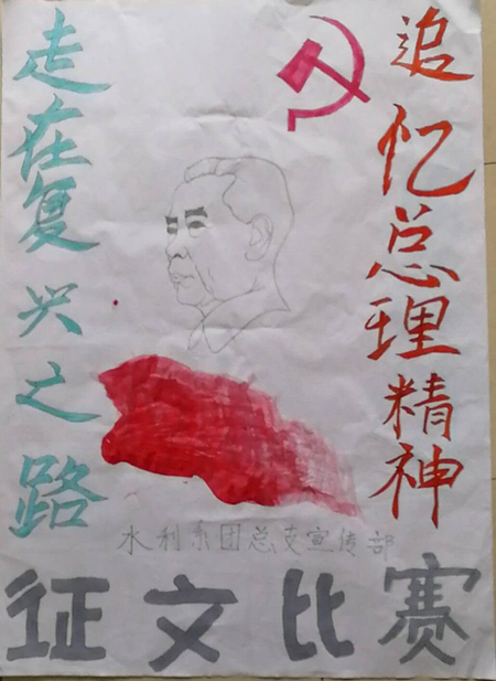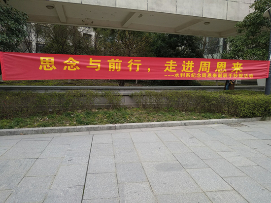 在此次系列活动中,水利系团总支和各班级先后开展了“思念与前行,走进周恩来,思想的楷模———手抄报”、“走在复兴之路,追忆总理精神———征文比赛”、“致周总理的三行‘情诗’”、“大禹讲坛第二讲——感念‘恩来情’”、“践行周恩来精神,建好周总理家乡”专题教育实践活动、纪念总理诞辰签名活动、总理事迹分享会、观看影片《周恩来的六个无为》、“传承伟人精神”宣誓仪式等形式多样的活动。