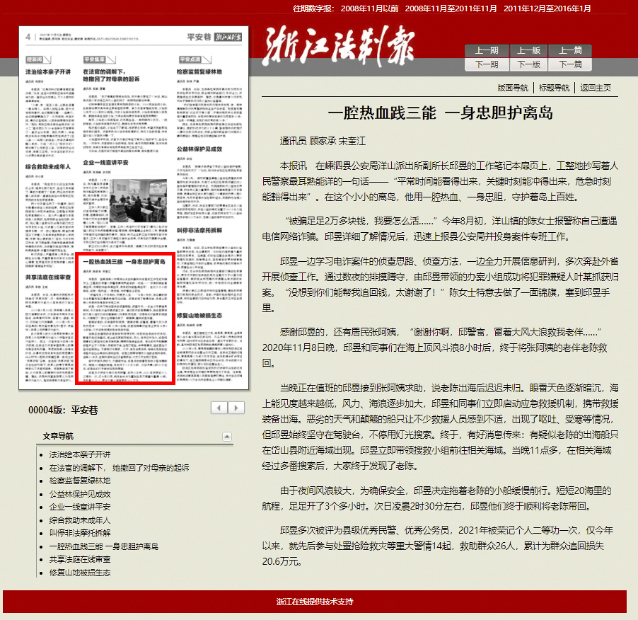校友邱昱同志先进事迹登上学习强国、《浙江法制报》、《中国公安报》
