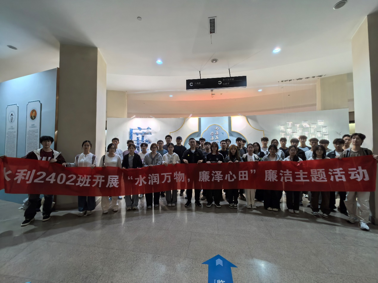 以德养廉、以人倡廉。10月23日,水利2402班学生前往中国水利博物馆参观学习,开展以“水润万物,廉泽心田”为主题的廉洁活动。活动由辅导员张港组织,班级全体同学参与。