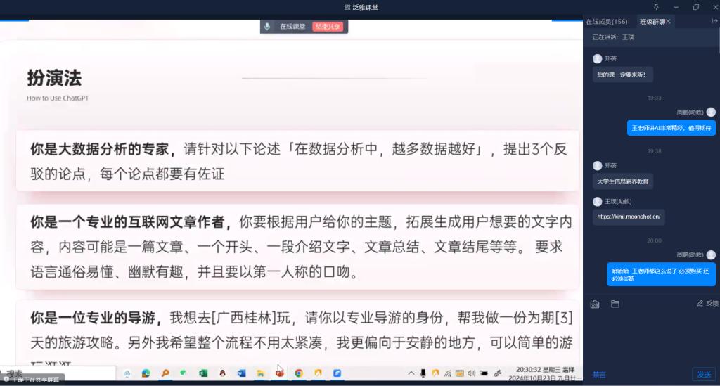 王璞指出,人工智能是把金钥匙,每一个高职院校的教师都需要不断提升自身数字素养,并把人工智能技术深入教育教学全过程,让学生主动地学,老师创造地教。他结合自己扎实的理论功底和实践,深入浅出、图文并茂地介绍了AI在精品课程、微课、数字人等方面的应用,老师们同步线上实操,整场讲座极富感染力,获得一致好评。