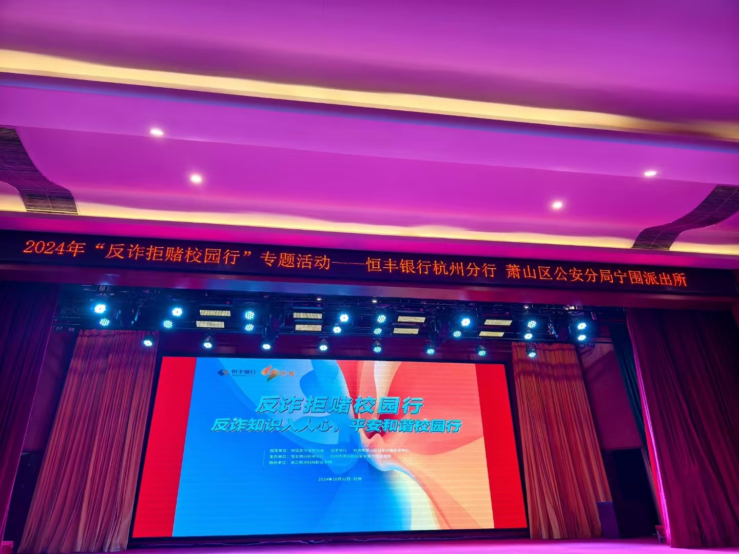 为全面筑牢校园反诈防线,进一步提高学生反诈防骗能力,自觉抵制网络赌博,10月31日下午,学校联合中国支付清算协会、萧山区反诈中心、宁围派出所、恒丰银行开展“反诈拒赌校园行暨防范网赌电诈小课堂”活动。近400名师生参加活动。