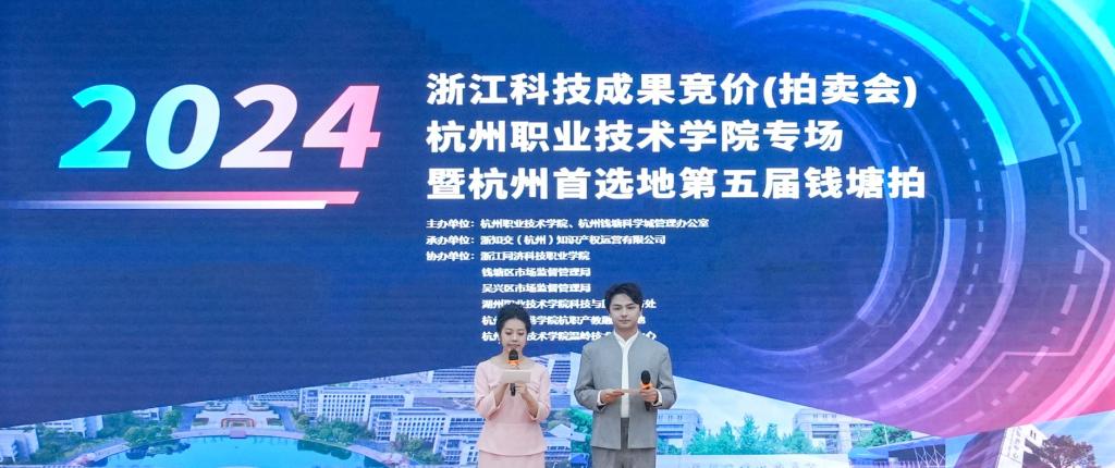 11月11日,2024年浙江科技成果竞价(拍卖会)杭州职业技术学院专场暨杭州首选地第五届钱塘拍在杭州职业技术学院举行。此次拍卖会由杭职院与杭州钱塘科学城管理办公室联合主办,浙知交(杭州)知识产权运营有限公司承办,我校和钱塘区经济信息化和科学技术局、钱塘区市场监管局、吴兴区市场监管局等单位协办,杭州市科学技术局、杭州市钱塘区、杭州市科技信息研究院,以及中国计量大学、杭州电子科技大学、浙江理工大学等单位参加会议。我校作为协办单位,科研处相关人员受邀参加,学校老师一项科技成果在拍卖会上参与竞拍并成交。