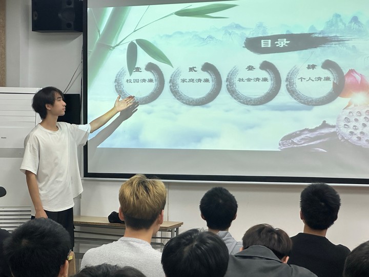 学院各班级依据班级特点和专业特色开展主题班会,通过集中宣讲、视频观看、主题报告、主题演讲、案例学习等方式向同学们传达廉洁思想。主题班会上,辅导员、班主任和班长向同学们强调廉洁教育的重要性与紧迫性,通过具体案例分析,加强同学们对廉洁的内涵和外延的认识,使同学们了解到廉洁不仅是一种道德品质,更是一种社会责任和担当。作为新时代的大学生,应该时刻保持清醒的头脑,坚守道德底线,远离腐败诱惑,为构建和谐社会贡献自己的力量。