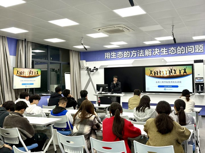 为通过校友的成功故事,激励学生树立远大目标,明确职业方向,提升自身的综合素质和竞争力,近日,水利工程学院邀请在水利一线的校友杨海丰回校分享成长经历和职业心得。