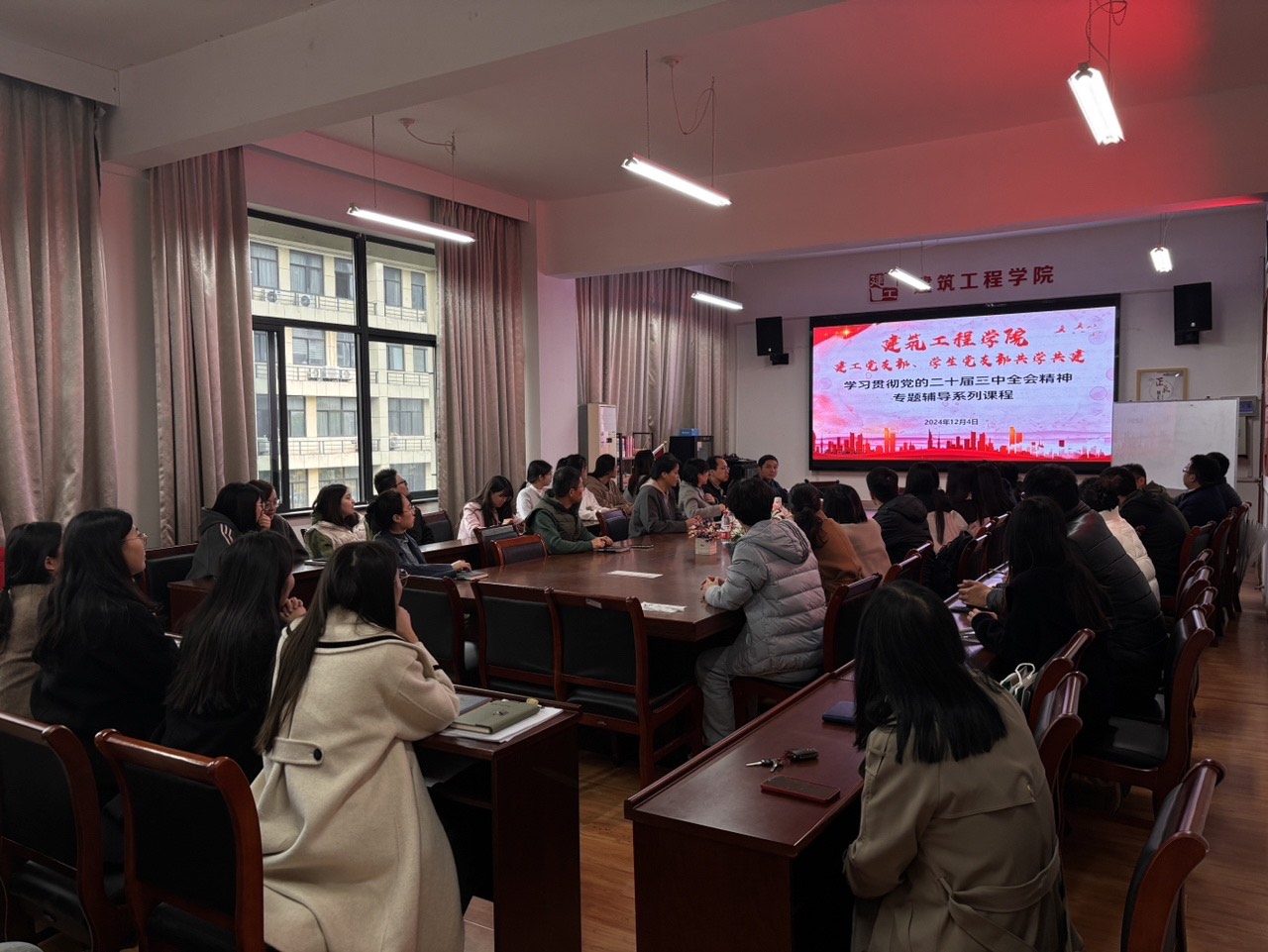 12月4日下午,为进一步加强党员队伍建设,提升党员的理论素养和政治觉悟,建筑工程学院建工党支部与学生党支部全体党员在C313会议室举行了党建联学活动,深入学习党的二十届三中全会精神专题辅导系列课程。
