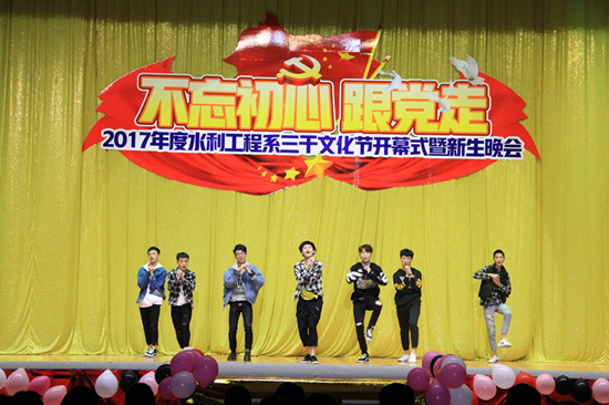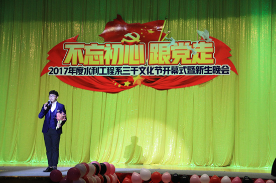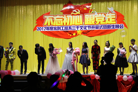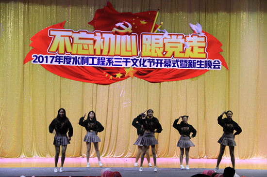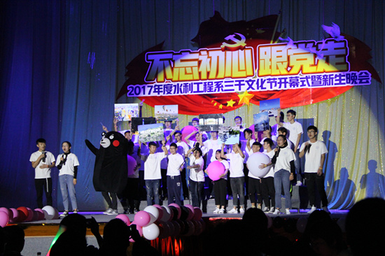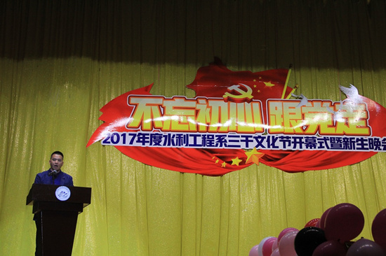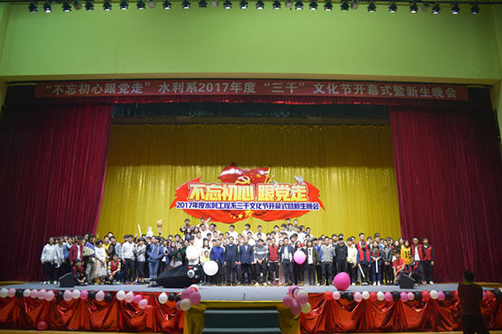 2017年11月8日18时30分,“不忘初心跟党走”2017年度“三干”文化节开幕式暨新生晚会在文体中心隆重举行。学院纪委书记葛民江、水利系党总支书记罗文、水利系办公室主任张建平,学院各系团总支书记出席开幕式并观看了晚会。另外,水利系全体教职员工与2017级全体学生共计500余人也观看了本次晚会。