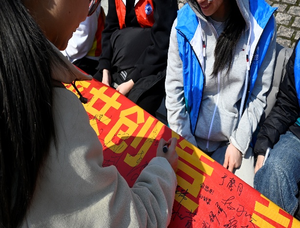 志愿者向过往师生介绍“世界水日·中国水周”的背景和意义,邀请他们在横幅上签字,表达对水资源保护的支持和承诺。在签字过程中,志愿者引导同学们分享自己在生活中节约用水的小方法,增强互动性,进一步强化水资源保护意识。