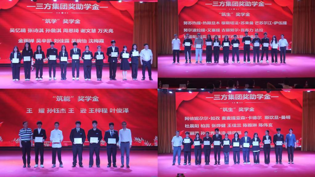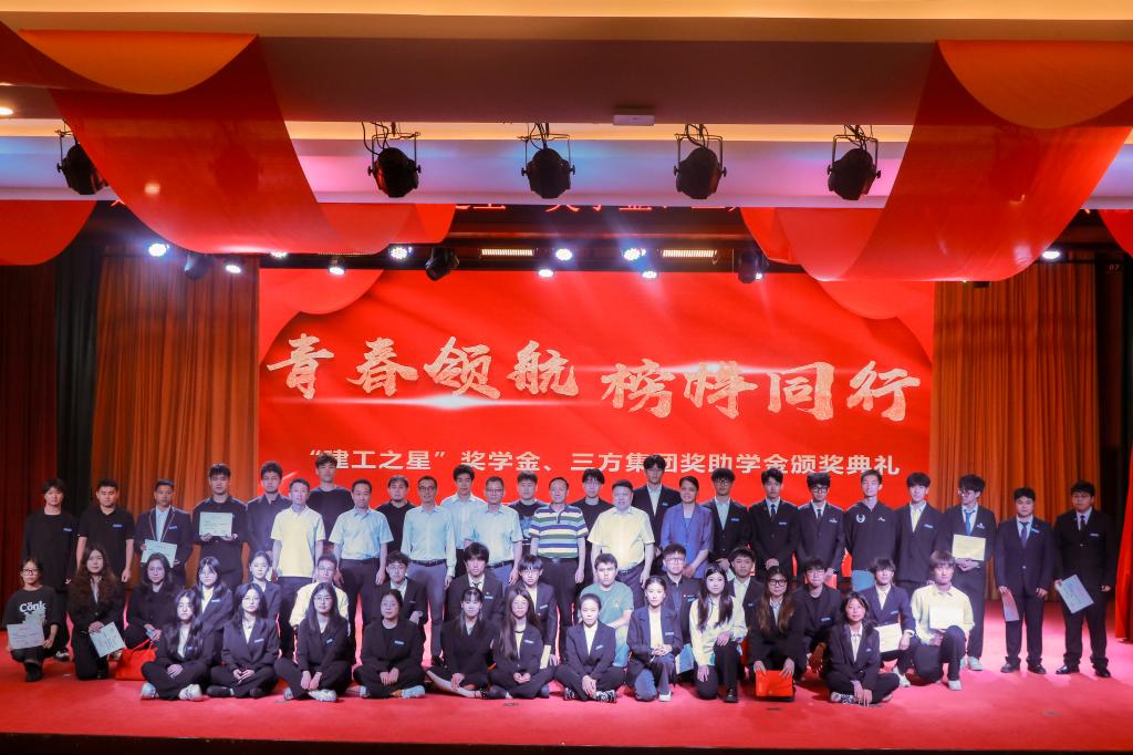 颁奖环节中,领导嘉宾分别为“建工之星”奖学金和三方集团奖助学金获得者颁发证书。学生代表分享了获奖感悟与成长经历。