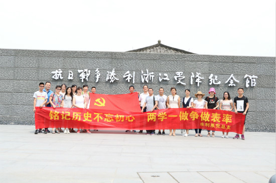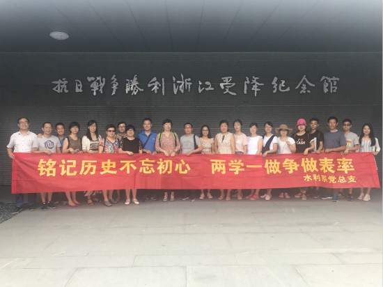 革命先辈的红色足迹,重温革命先烈的奋斗历史,进一步践行“两学一做”学习教育制度化常态化,强化教工党员党性观念,提高服务思想意识,发挥党员先锋模范作用。7月1日建党节当天,水利系党总支组织全体教工党员赴富阳参观抗日战争胜利浙江受降纪念馆。
