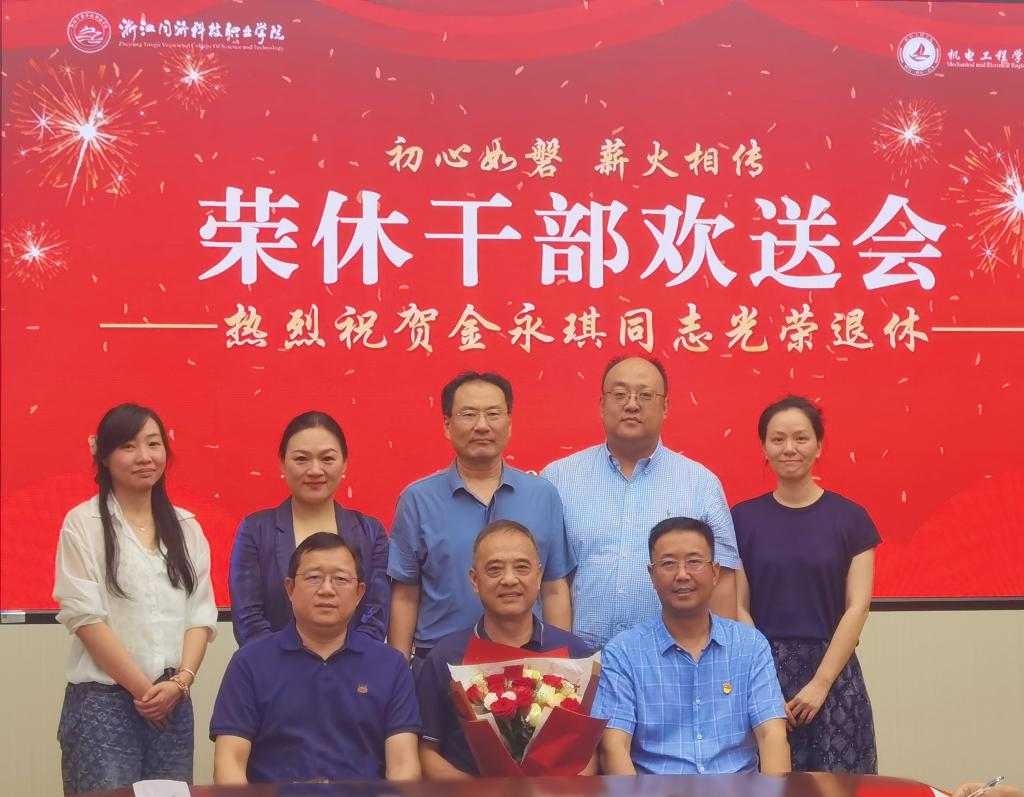 7月2日,机电工程学院在钱江楼513会议室举行金永琪同志荣休欢送会。学校党委委员、副校长刘进宝,党委委员、组织部部长楼骏出席,机电工程学院全体教职工齐聚一堂,共同参与并见证这一温情时刻。欢送会由学院党总支书记王志远主持。
