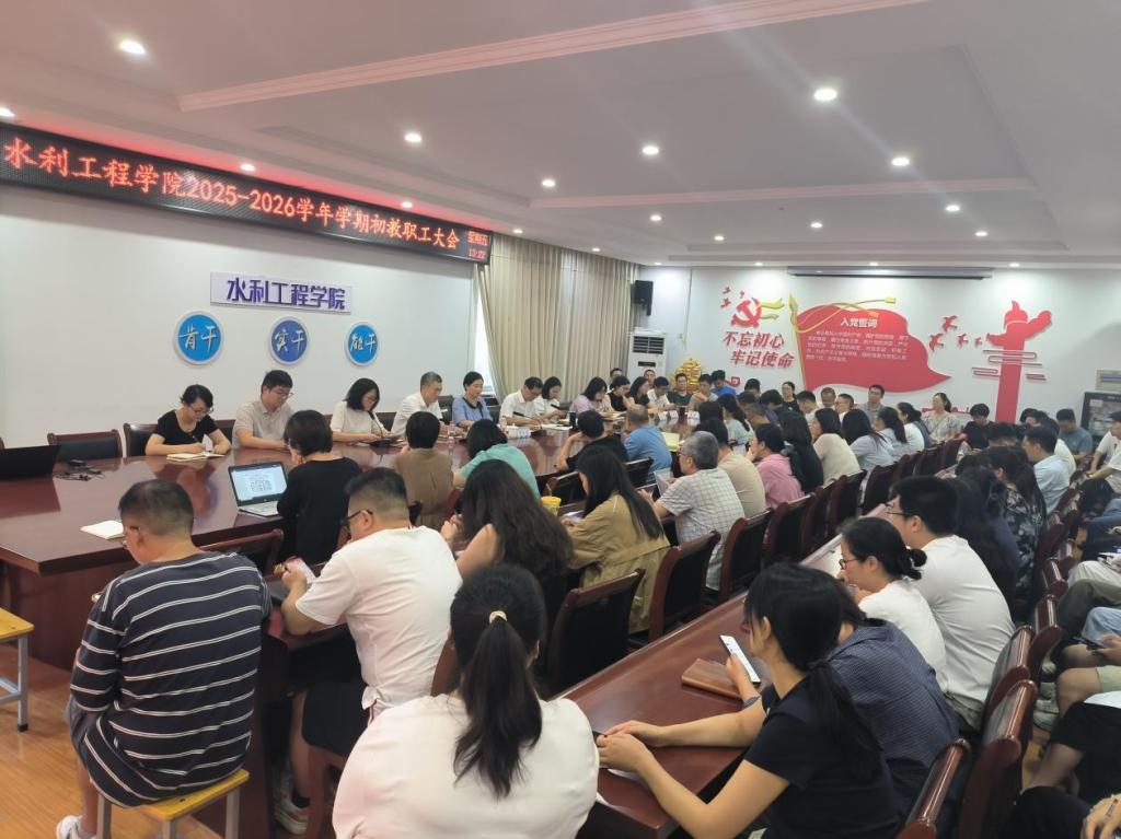 9月5日,水利工程学院在A319会议室召开2025-2026学年第一学期期初教职工大会,全面部署新学期重点工作。学校校长王卫标,校党委委员、工会主席吴玲洪出席会议并讲话。会议由学院院长金斌斌主持,全体教职工参会。
