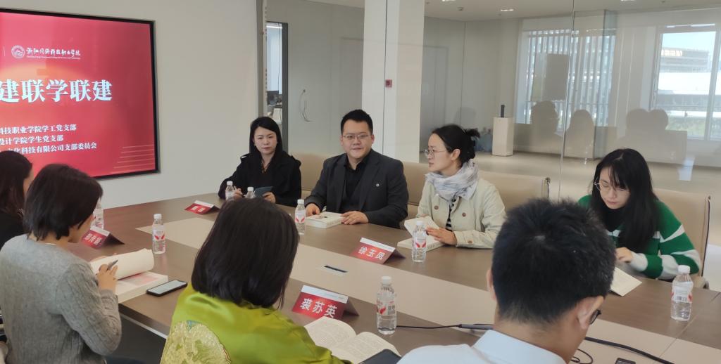 为推动党建工作与业务发展深度融合,加强校企合作,提高创新创业教育成效,10月24日,艺术设计学院党总支、学生党支部与学校学工部党支部共赴与光同行(杭州)文化科技有限公司开展交流共建。与光同行(杭州)文化科技有限公司总经理、艺术设计学院校友何金铭,学校学工部部长傅鑫杰、艺术设计学院党总支副书记徐玉凤,以及艺术设计学院和学工部相关党员参加。
