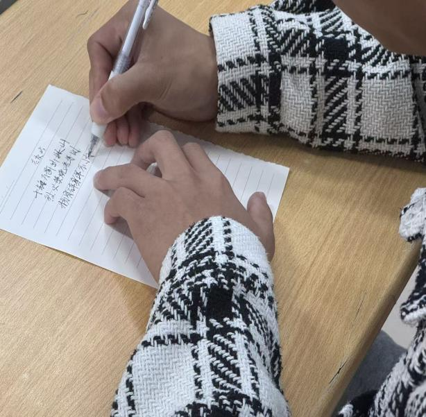 在清廉班会上,同学们以手写形式传递廉洁信念。有的书写“廉”字,笔锋苍劲彰显对廉洁的敬畏;有的写下廉洁承诺,字字恳切表达守廉决心;还有的绘写“清”字,以笔为媒将清廉种子深植心间,在一笔一画中让廉洁文化浸润心灵。