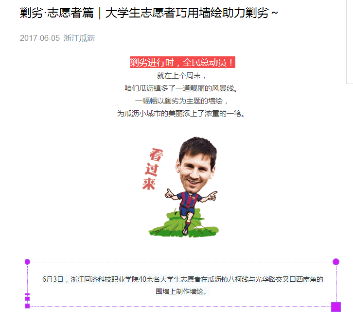6月5日,浙江瓜沥新闻网,报道了艺设系志愿者巧用墙绘助力剿劣行动。