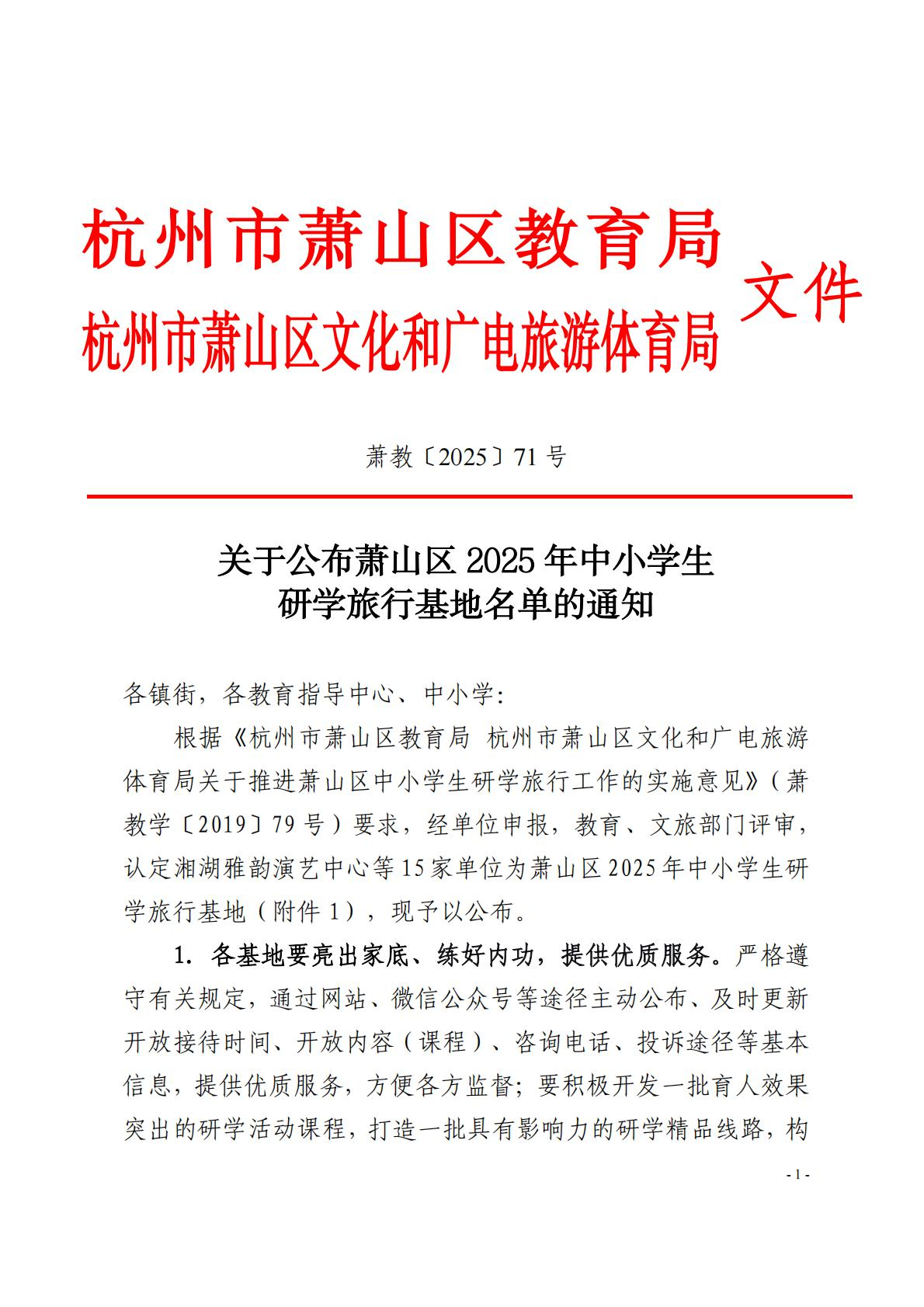 近日,杭州市萧山区教育局、杭州市萧山区文化和广电旅游体育局联合发布了《关于公布萧山区2025年中小学生研学旅行基地名单的通知》(萧教〔2025〕71号)。学校“同科·精工智造少年工匠研学基地”凭借鲜明的特色、优质的资源与完善的保障,成功入选萧山区中小学生研学旅行基地。