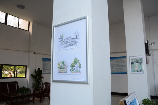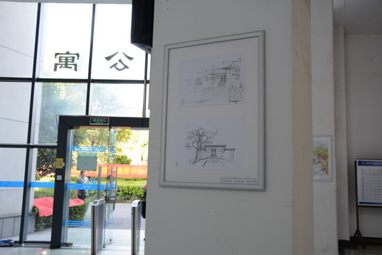环艺1501班学生的优秀作品有幸在本次装饰活动中被选中,该班级在四月份赴安徽查济写生两周的时间里创作了大量的作品,在指导老师的帮助下,选取了十余幅色彩和速写作品裱框,悬挂在学生公寓A楼、B楼、C楼入口大厅进行展示。作品悬挂出的当天就吸引了许多同学的目光和驻足。大家纷纷表示,在寝室公共区域悬挂同学们自己的作品,会让大家更有亲切感和归属感,不仅为学生提供了展示才华和专业能力的平台,同时也提高了寝室的文化和艺术品位。