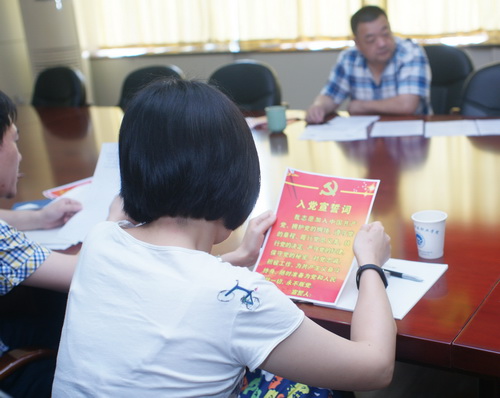 “我志愿加入中国共产党,拥护党的纲领,遵守党的章程,履行党员义务,执行党的决定,严守党的纪律,保守党的秘密,对党忠诚,积极工作,为共产主义奋斗终身,随时准备为党和人民牺牲一切,永不叛党。” 在组宣部副部长吴敏启的带领下,支部全体党员怀着无比激动的心情,面对党旗庄严宣誓。相比第一次宣誓入党时的激动,许多党员表示,这次重温入党誓词,更多的是感到自己身上的使命和责任,更加坚定了自己的共产主义信仰。
