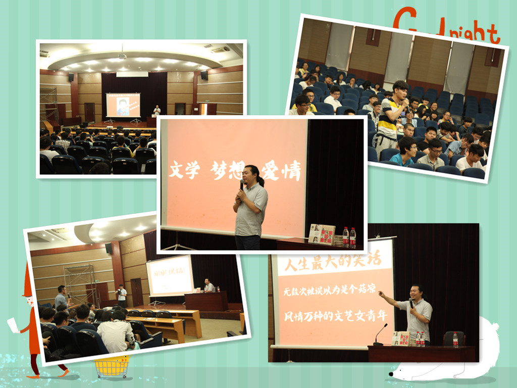 5月16日下午2:00,我院有幸邀请到与韩寒、九把刀、贾飞一同被中国出版集团《图书馆报》推举为中国四大青年作家的一草先生在图书信息中心一楼报告厅为大家做一场关于青春、励志的讲座。