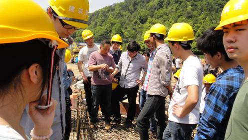 4月23日上午,在专业老师曹广田、林呀的带领下,10级城镇建设专业的同学来到位于杭州西湖区的转塘镇大清谷2标施工现场进行认知实习。