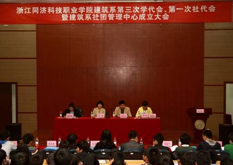 2011年 11月29日下午16:30整,经过精心筹备,建筑系第三次学生代表大会、第一次学生社团代表大会(暨建筑系学生社团管理中心成立大会)在信息楼报告厅隆重召开。本次大会由辅导员傅晓艳老师主持,有96名正式代表、2名教师正式代表及13名列席代表参加。院团委副书记黄暖莅会并致贺词,来自院学生会代表及其他系团总支书记、学生代表也出席本次了大会。