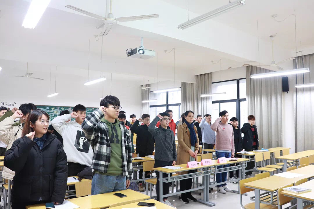 首先,由机电系蒋晓冬书记致辞,她指出“周恩来班”、“邓颖超班”创建工作一直是我们学院的文化品牌,作为当代青年应该认真学习周恩来总理“为中华之崛起而读书”的精神。她希望各个班级积极组织活动,通过“周恩来班”、“邓颖超班”的创建,营造一个积极向上欣欣向荣的班风、学风、系风。随后,胡馨予老师带领大家庄严宣誓:牢记先辈教诲,本本分分做人,秉承伟人精神,争创周邓班级。最后,历届周邓班创建班级班长和答辩人代表向大一同学们介绍了周邓班评比的注意事项,毫无保留地向大家分享他们的争创故事。也对同学们的疑问进行了解答。