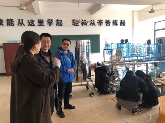 座谈会后,水利系副主任金斌斌、屈兴红老师等陪同来访客人参观了学院“水环境监测与治理技术”比赛的训练场地。